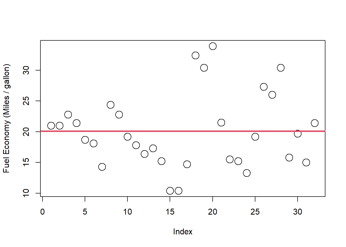 abline(h = mean(mtcars$mpg), col = 2, lwd = 3)