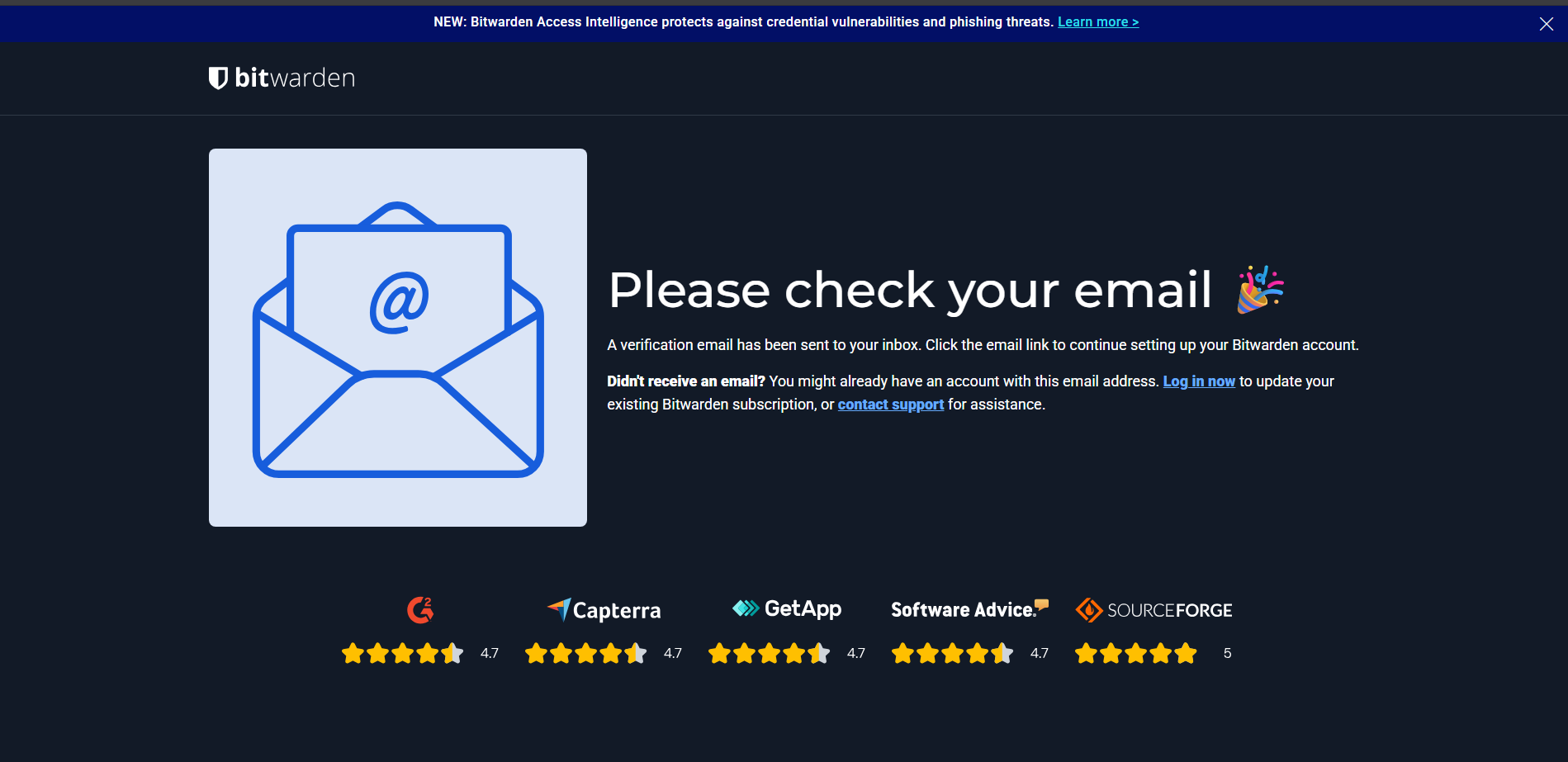 - “Please check your email” と表示されるので、メールボックスを確認します