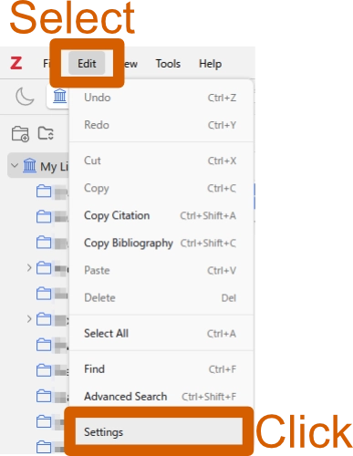 - 最初の画面に戻り、[Edit] > [Settings] をクリックします。