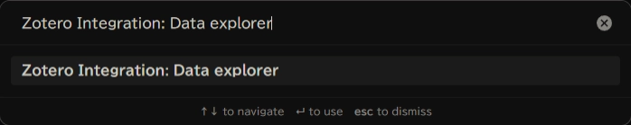 Ctrl + PまたはCmd + P)を開きます。 - Zotero Integration: Data explorer を選択して実行します。
