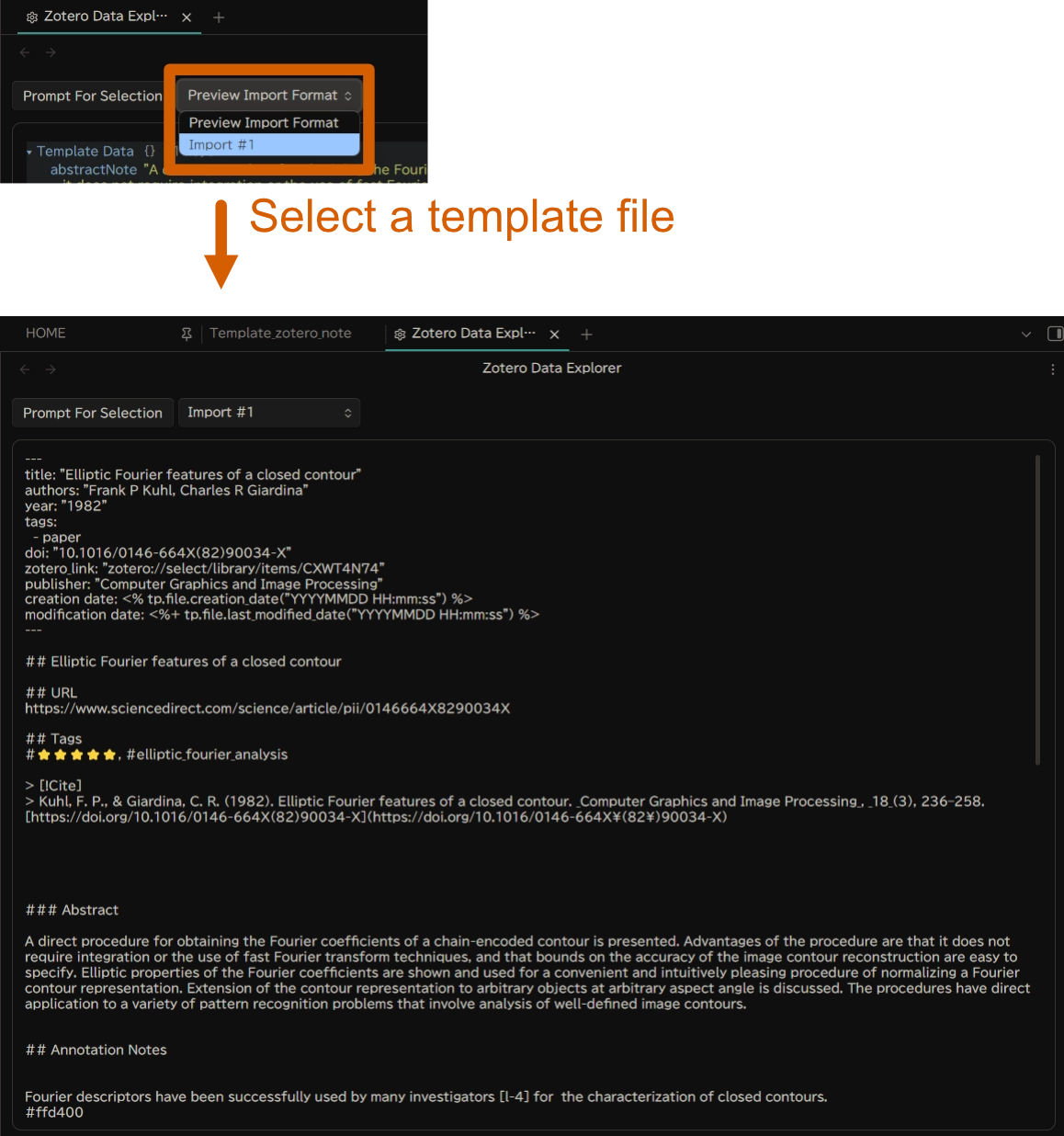 Zotero で作成したメモや注釈を Obsidian に取り込む際のテンプレートファイルを作成します。 場所は、Import Formats > Template File で指定したパスにします。