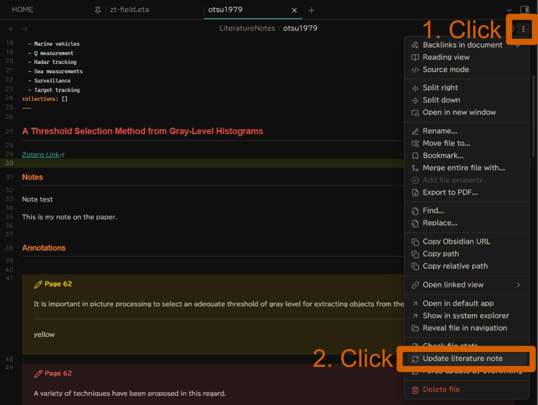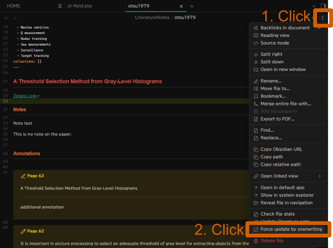 Zotero の注釈を更新した場合、Obsidian のノートも同期するように更新することができます。