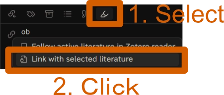 - 右側に注釈パネルが開かれます。リンクアイコンの [Choose Follow Mode] ボタンを選択し、[Link with Selected Literature] をクリックします。