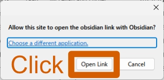 作成したノートを Obsidian で開くかを尋ねるダイアログが表示されます。[Open Link] をクリックすると、Obsidian でノートが開きます。